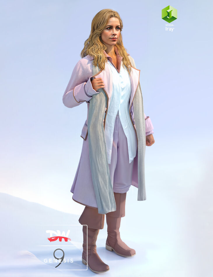Now fully adapted for Daz Studio, this model is built on the Genesis 9 Female (G9F) base, capturing Romana’s elegance and intelligence as portrayed by Lalla Ward.