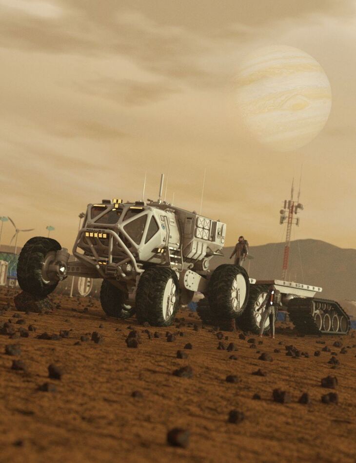 Romulus, one of the other manned rovers used on Mars during the ISA missions. With complete control over the suspension, the vehicle will traverse any terrain.