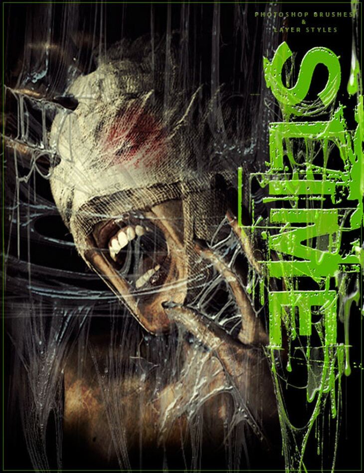 This set gives you the tools to produce your own special effects with Photoshop layer styles and High-Resolution Photoshop brushes of real slime.