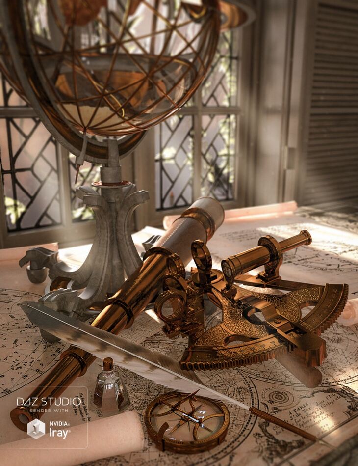 The set contains a table, globe, sextant, compass, several parchment papers, quill, and ink bottle. Add this set into your Rosemill Moor or use it in a totally different environment.