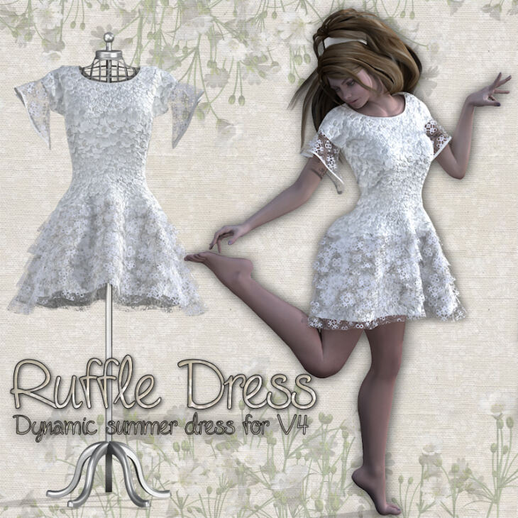 RuffleDress is a pretty dynamic summer dress for V4, which can also be used with The Girl4, Aiko4, Elite and all the V4 morphs ++.