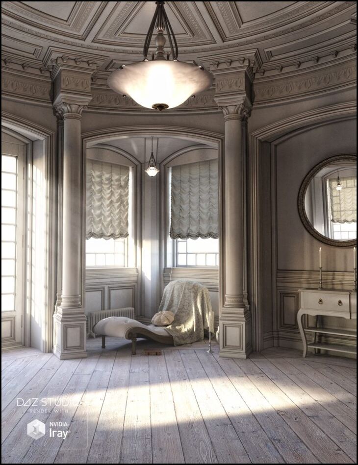 Rural Chateau III is an addon to the original Rural Chateau series which adds a smaller room and selection of props to fill it. It is designed to compliment the existing rooms, and the furniture can be arranged in the room as desired.