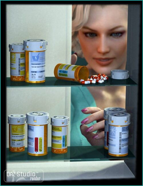RX is a set of eleven prescription props, with two bottles with removable tops and three medication types. Each pill comes as a single pill prop, and as small group props. RX is perfect for your next doctor or medical render.