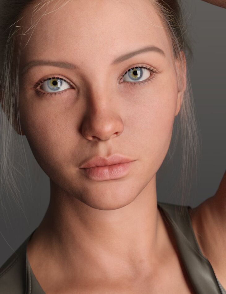 She comes with carefully-crafted head and body morphs, as well as separate HD details (resolution 4). Use the Genesis 9 PBR shader for stunning realism.