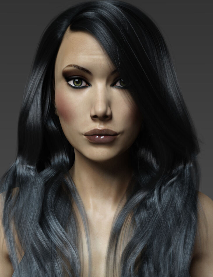 Character is custom sculpted in ZBrush with some help adjustemnt with Genesis 3 Female Head and Body Morphs.