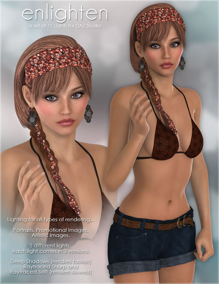 A set of 5 Lights for DAZ Studio. Each light comes with 3 variations for a total of 15 Lights.