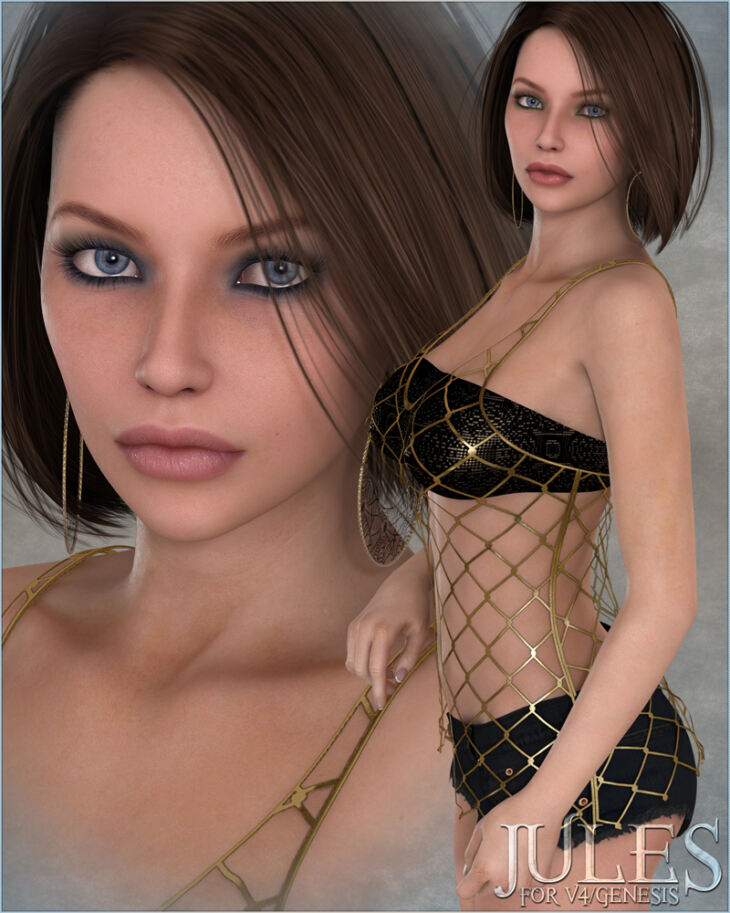 Jules is a high quality character for Victoria 4 and Genesis. Using a combination of photos, resources, and hand painting for the details on her skin.