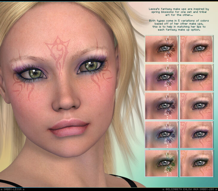 Lessa is a character for Victoria 4. It also requires Stephanie, Elite, and Morphs ++ for the body morph to work.