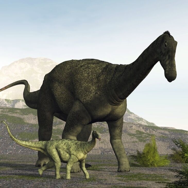 Saltasaurus loricatus is a genus of titanosaurid sauropod dinosaur of the Late Cretaceous Period, about 83 to 79 million years ago, north-west Argentina. It had an estimated length of 12 meters (39 feet) and a mass of 8 tons. Contemporary predator was Abelisaurus.