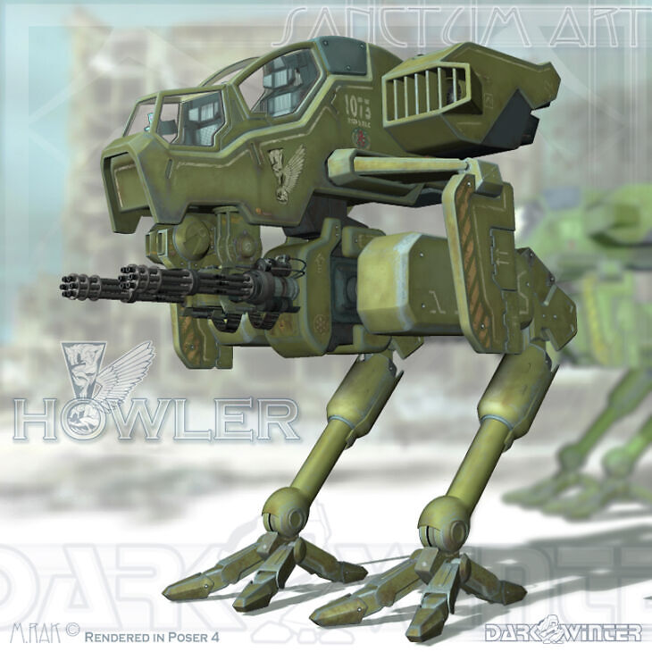 Sanctum Art introduces a "Howler", Sci-Fi med-heavy armored all-terrain mecha weapon platform character. "Howler" is the first "Stand Alone" figure character from the "Dark Winter" series.