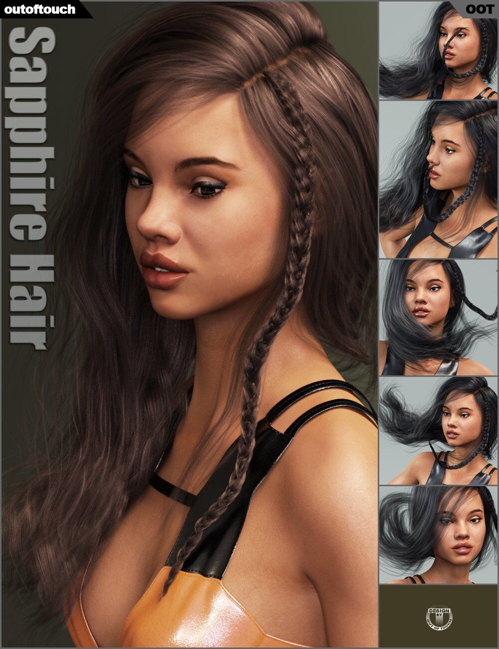 All Sapphire Hair options come with both native DAZ Studio and Poser files, making use of the hair in your preferred software easy. It comes with fits for Victoria 4, Genesis 2 Female, Victoria 6, Aiko 6, The Girl 6, Genesis 3 Female and Victoria 7.