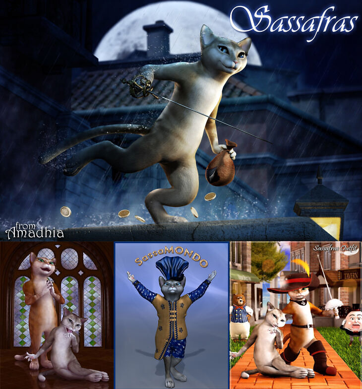 The smell of the night was sweet and the light rain only helped to hide her escape. Sassafras leaped from the open window landing lightly on her paws upon the rooftop more than a story below. As she ran she could hear the people shouting far above her... but it was her gold now! Sassafras, the playful kitty who's always getting into some kind of mischief!