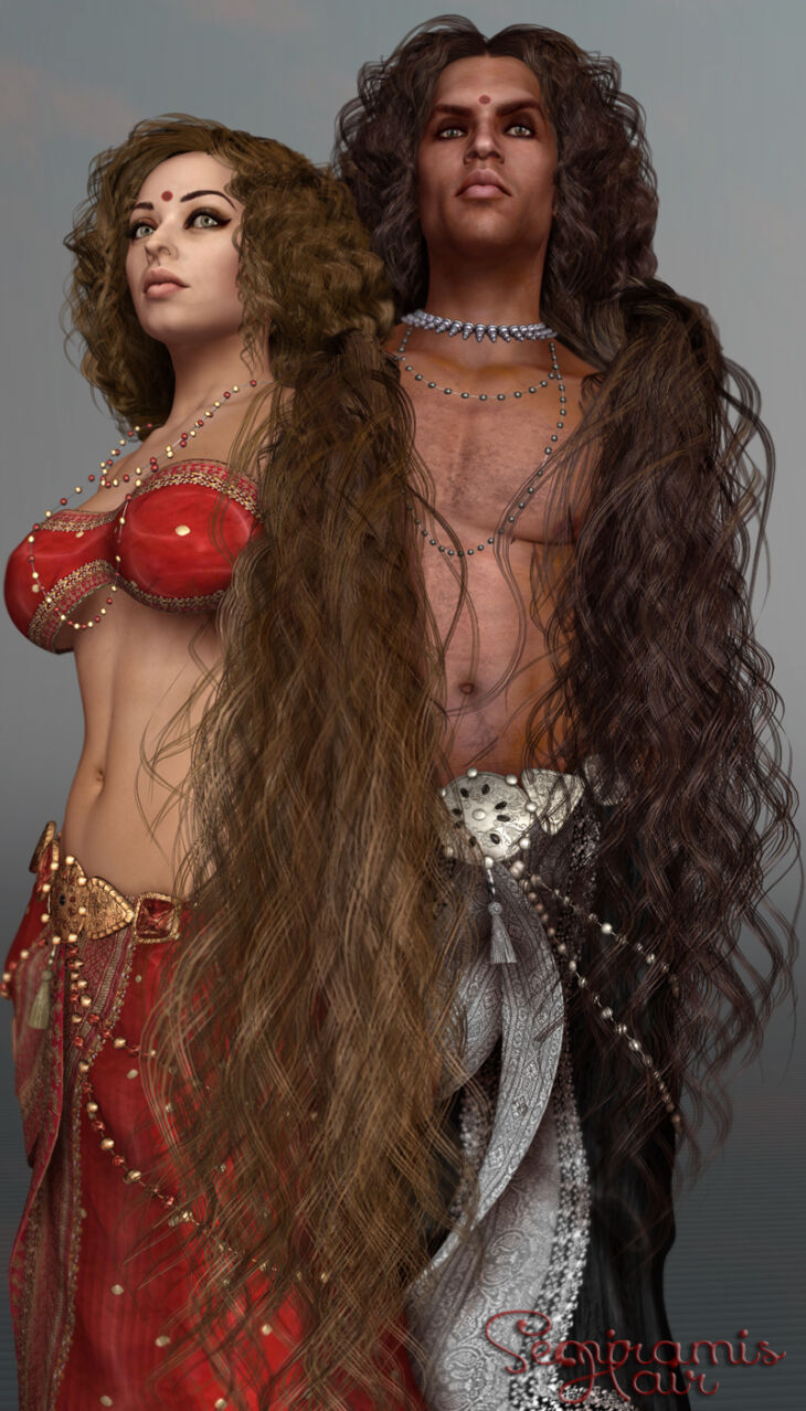 Fantasy, quality hair set, consist of 2 conforming character presets for M4 and V4, 1 smart prop by default for M4, with Genesis,Genesis2, Dawn V4, M4, Anastasia refits, which can be scaled translated and with the help of the adjustment morphs, can fit any other poser humanoid character.