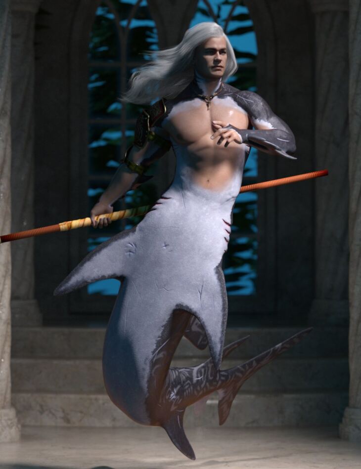 Once an innocent shark boy, he's now the most dangerous warrior in the shark army and the ultimate predator in the entire sea. Don't miss the opportunity to be part of the underwater action with the Scarred Hierarchical Poses for Genesis 8 Male and FPE Shark Tail.