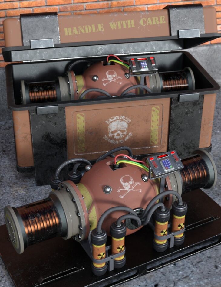 Highly detailed sci-fi explosive and crate.