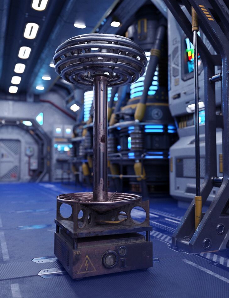 A sci-fi essential prop: the Tesla coil. Clean and Dirty texture options included, with various emissive texture choices.