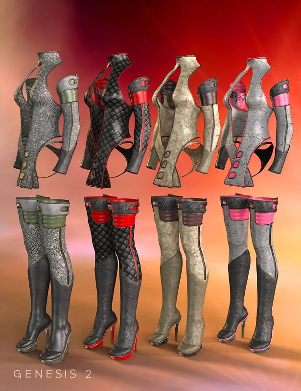 The Universe is a big place so make sure you pack enough for the long trip. These four texture sets for Sci-Fi Siren Outfit for Genesis 2 Female(s), a premiere 3D model, will ensure you have a wardrobe option for every new adventure.
