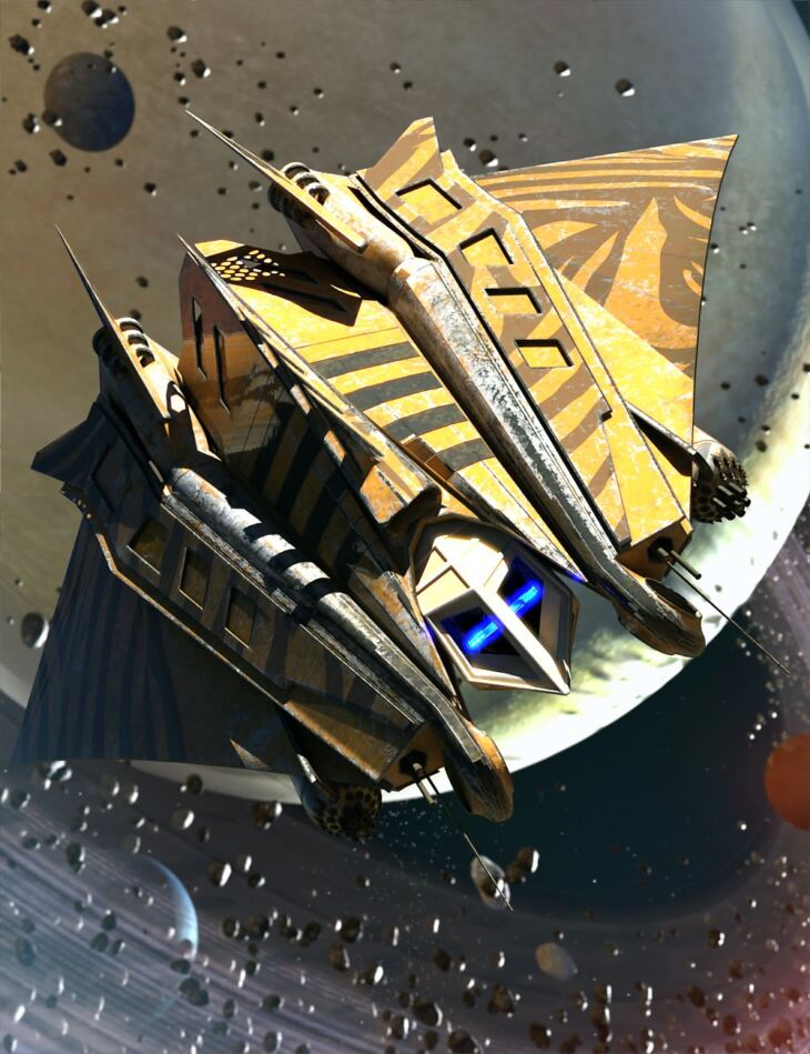 This spaceship comes with 4 separate textures and Blue and Yellow Emitters which can be turned on and off to fit in perfectly in your next render.