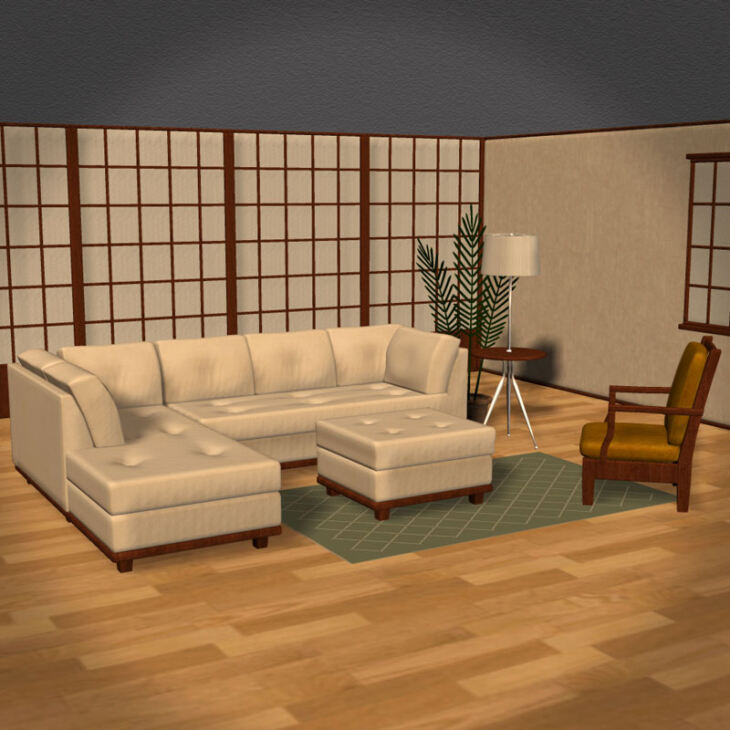 The Sectional Living Room Set is an eleven piece living room set complete with room building elements and sectional furniture pieces.