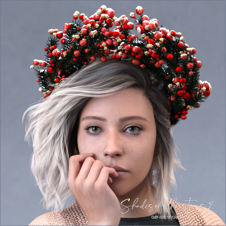 The set consists of a a hair wreath and a pair of earrings for Genesis 8/8.1 and Genesis 9 Females.