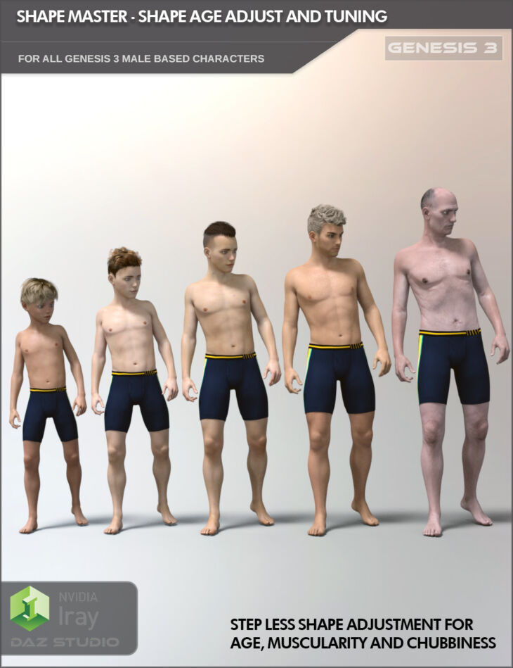 Do you want to adjust the shape of Genesis 3 Male to make him younger or older? More muscular or chubby? Are you tired of dialing in dozens of morphs to get what you want?