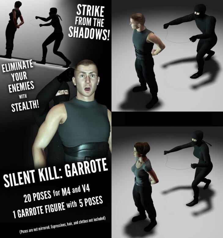 Eliminate your enemies with stealth using one of an assassin's simplest tools: the garrote. A total of 20 poses for M4 and V4 are included.