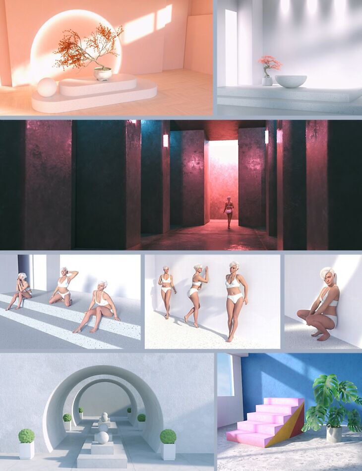 Elevate your renders with this all-in-one bundle featuring 5 minimalist photoshoot scenes, stunning vegetation décor, and versatile pose presets for Genesis 8 & 9 Females. Perfect for creating sleek, professional visuals, this collection offers everything you need for dynamic, elegant, and lifelike scenes.
