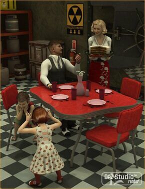 For your virtual kitchen or dining room, an authentic sixties dinette set, complete right down to bud vase, salt and pepper shakers, and a sixties-style 'sunburst' clock for the wall with poseable hands!