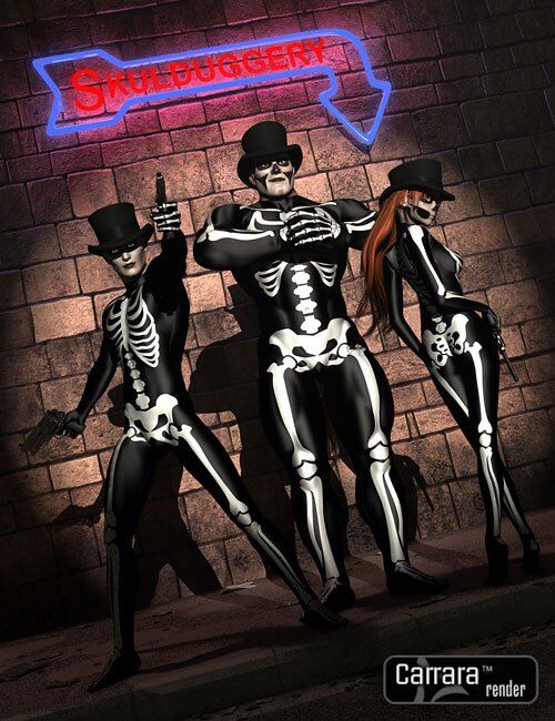 Whether headed out to a Halloween party or for some late night larceny, all the Millennium 4 figures look sharp wearing this rolled brim top hat and skeleton bodysuit costume.