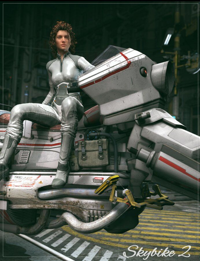 SkyBike2 is an intricate and highly detailed Sci-Fi vehicle that will add a flash of excitement to your renders. Whether your characters are zooming through traffic, fleeing from the oppressive government agents, or hunting down the badland bandits, they'll have the edge they need to get the job done. With SkyBike2, speed will never be an issue.