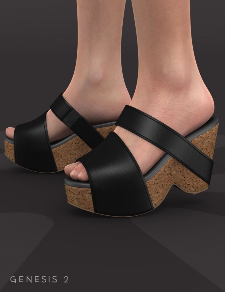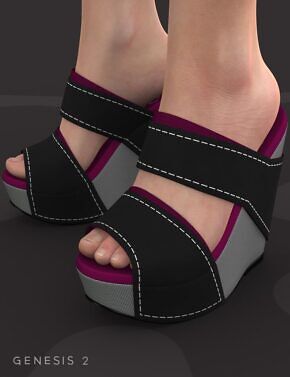 Slide Shoes for Genesis 2 Female(s) include 23 color options and multiple surfaces options. Perfect for adapting them to match any outfit you want!