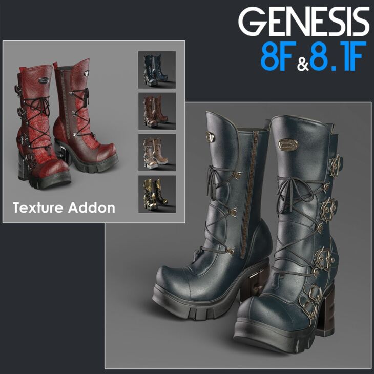 Realistic High Quality modeling boots for Genesis 8 Female with 5 Stylish High Quality Iray materials!