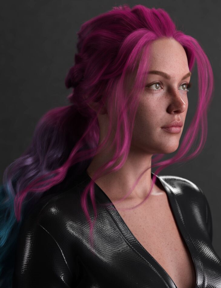Step into the colorful world of more possibilities to style up your Soft Curls Ponytail hair. This texture expansion brings you a huge palette of hair colors, additional blending overlays, and preset styles for Iray. Now is your time to get creative!