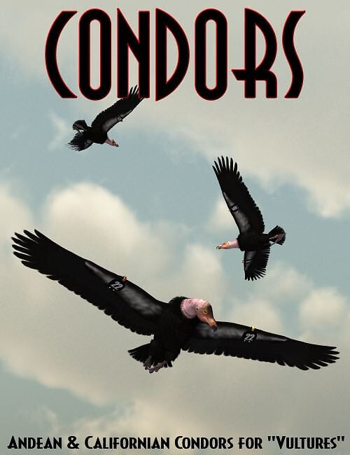 Condors is an add-on package for “Vultures” from the popular Songbird ReMix Series. The Condor is the largest living bird on the planet with a wingspan over 9 feet long. Both species, the California and the Andean Condors, have been recreated down to the last hair on their mostly bare heads. Each species has three variants.