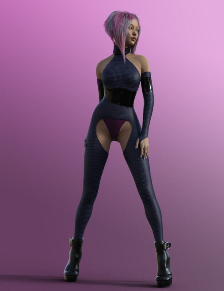 Get the Soo A Outfit for Genesis 8.1 Females with its 13 material presets for your sci-fi, manga, cyberpunk, or fantasy scenes. You can choose a fabric, latex or rubber materials. Bump or just change the color diffuse for any look you need. With high heel boots and a tight suit, you can turn your character into a superhero.