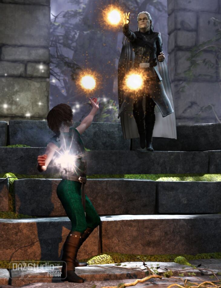 The duel between mages is the ultimate battle of skill and will. With 3D Sorcery Poses for Genesis, your mage can cast his or her magic far and wide, for right or wrong.