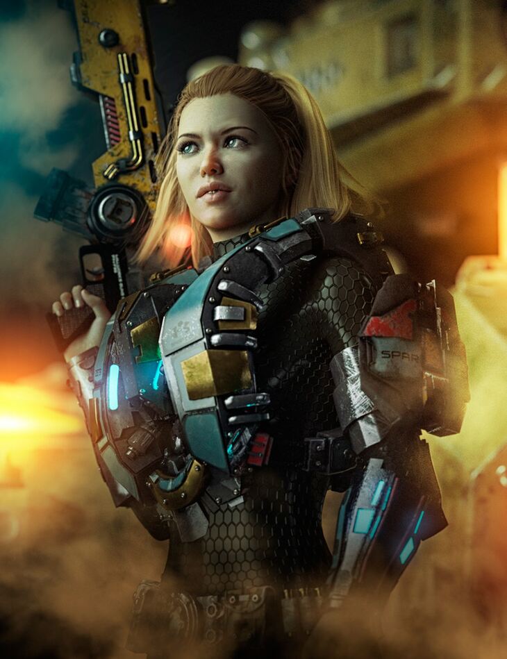 SpartechOps for Genesis 3 Female(s) is a military sci-fi outfit.