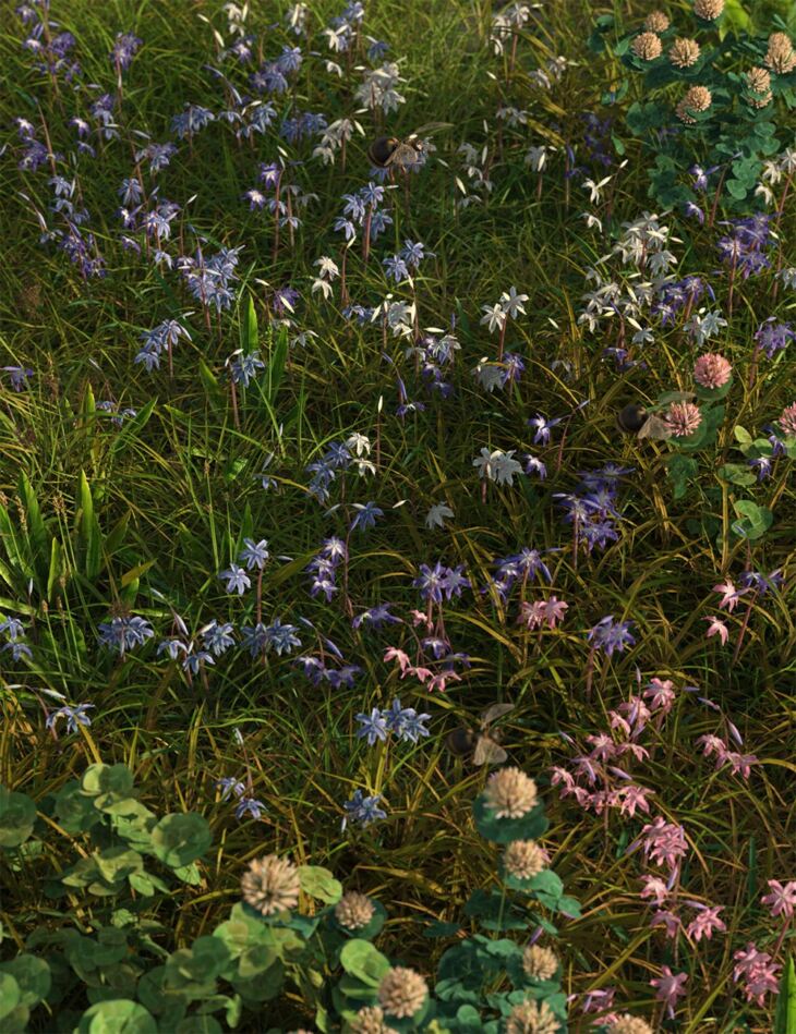 Sprinkle some spring sunshine into your scenes with Spring Flowers - Scilla Siberica - Squills, a set of 28 detailed models of these beautiful little spring bulbs.