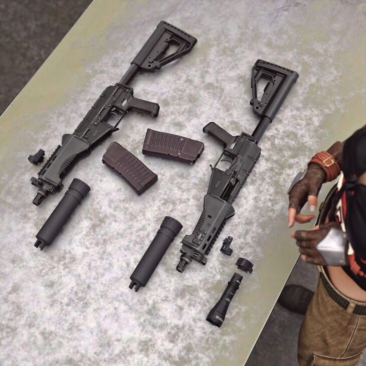A compact sub-machine gun, developed in Russia in 1990s. Influenced by AS VAL, but more compact, designed for special operations where concealed carry is a key. Small, but still packs a punch with a 9x39 cartridge.