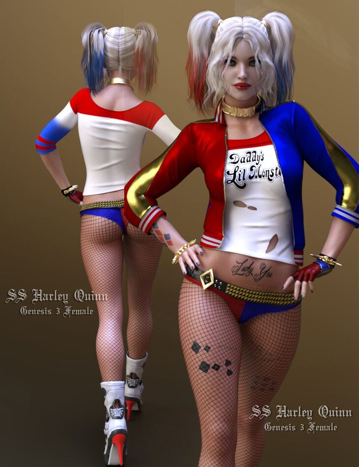 SS Harley Quinn outfit for Genesis 3 Female.