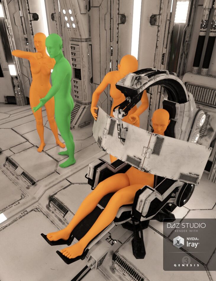 The SS Marcoor Control Room poses offers center loading poses as well as poses that simply load right into place within the scene.