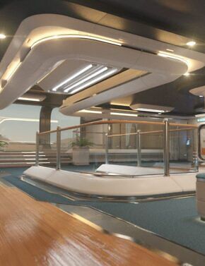 Located on the front edge of the underside of the starship is the crew lounge. Here, they can relax from their shift and socialize with other crewmembers or simply look out the main windows.