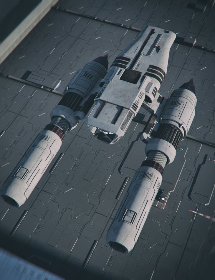 It's quick to render and easy to use. The Starship R05 comes with pose controls for the seat, Iray and 3Delight ready, with 2 poses for Genesis 3, and with 2 poses for Genesis 8.