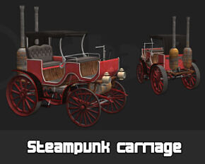 A standalone steampunk carriage, which can be used on its own or alongside the steampunk ostrich. Full DS support as standard, and basic Poser support.