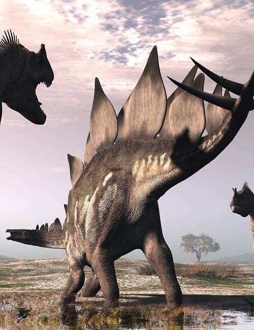 Full name, Stegosaurus Stenops, meaning "roofed lizard" was a large herbivore dinosaur from the Late Jurassic Period in North America and Europe. The spikes were most likely used for defense, while the plates were for display and possibly for thermo-regulation and also recognizing their own kind, sort of like an ID.