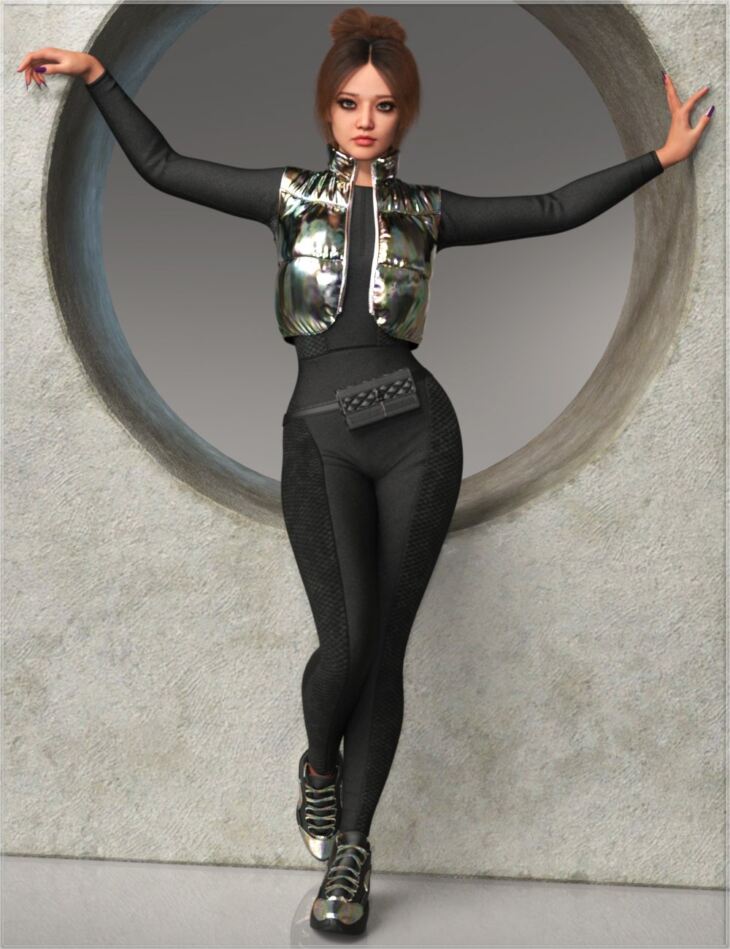 The set comes with a bodysuit, vest, belt bag and shoes. It includes 3 full texture presets.
