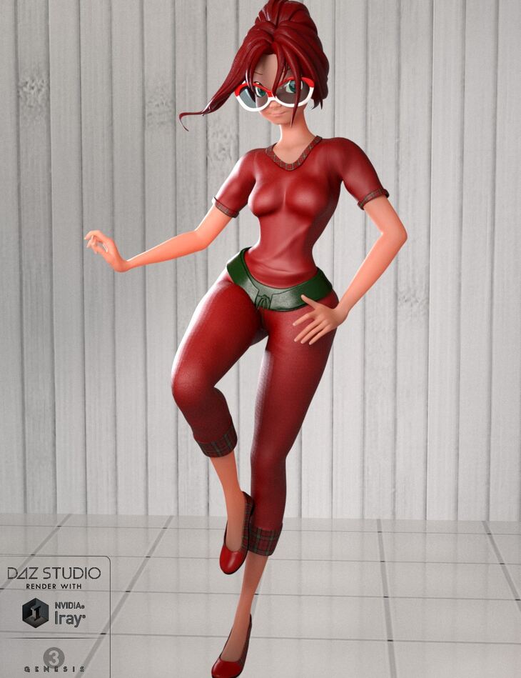 This outfit contains 3 conforming Clothing assets, 1 smart parented Glasses accessory with Adjustment and Movement Morphs, Iray and 3Delight Materials.