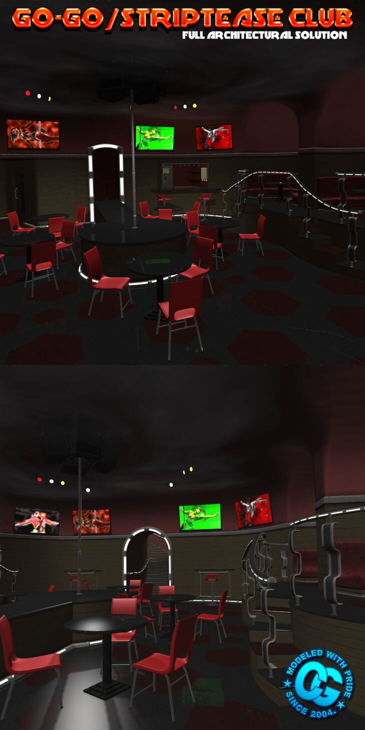 Full architectural solution for Striptease Club or Go-Go Bar.