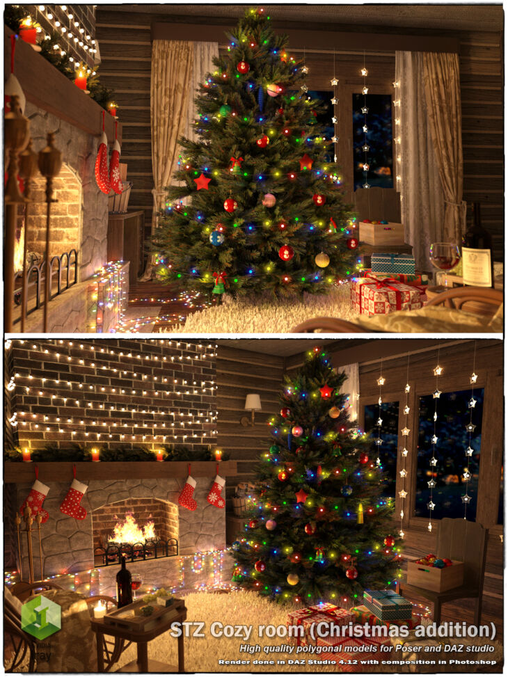 "STZ Cozy room (Christmas_addition)"- Extreme quality hi polygonal models for Poser (FireFly only) and DAZ studio (Iray only).