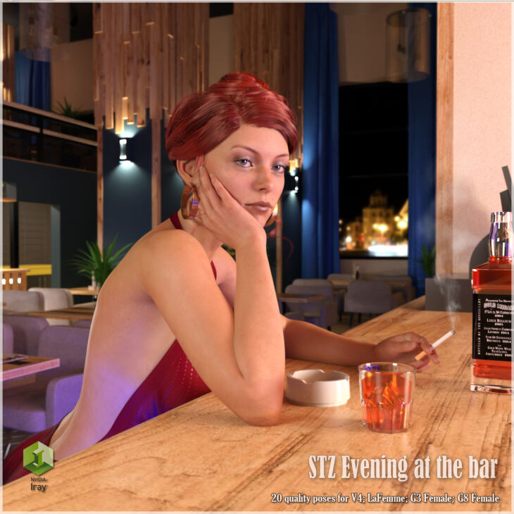 "STZ Evening at the bar" - it's a 20 unique quality poses collection for V4; LaFemme; G3 Female; G8 Female.
